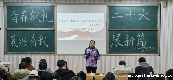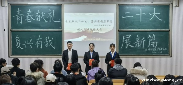 本站讯 为深入学习贯彻党的二十大精神,激发国际商学院广大学子的爱党爱国热情,展现青年一代昂扬向上的精神风貌,11月18日,国际商学院学生党支部在经远楼201C组织开展了“青春献礼二十大,复兴有我展新篇”主题演讲比赛。