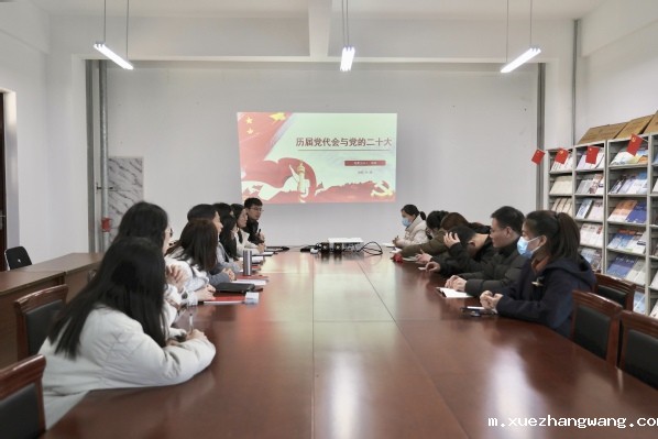 管理学院党总支副书记张政带领学院全体教工党员深情重温历届党代会并深入解读党的二十大,通过回顾光辉历程,感受历届党代会主题、精神的一脉相承,教育引导全体教工党员不忘初心、牢记使命,切实肩负起为党育人、为国育才的光荣使命,为推动学校各项事业高质量发展作出更大的贡献。