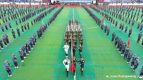 2025级新生分别进行了匕首操、军体拳、刺杀操、心肺复苏等四项军事科目演练。国旗方队、国旗护卫队、校旗方队,及36个分列式方队接受检阅。新生们军容严整、步伐铿锵、口号嘹亮、气势如虹。