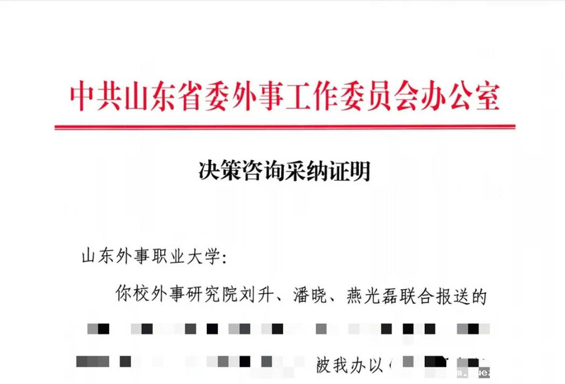 近日,学校外事研究院副院长刘升研究员团队成员撰写的咨政报告被山东省委外办采纳报送,并由省委办公厅并报送中共中央办公厅。