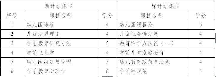 学前教育新、原专业考试课程对顶表