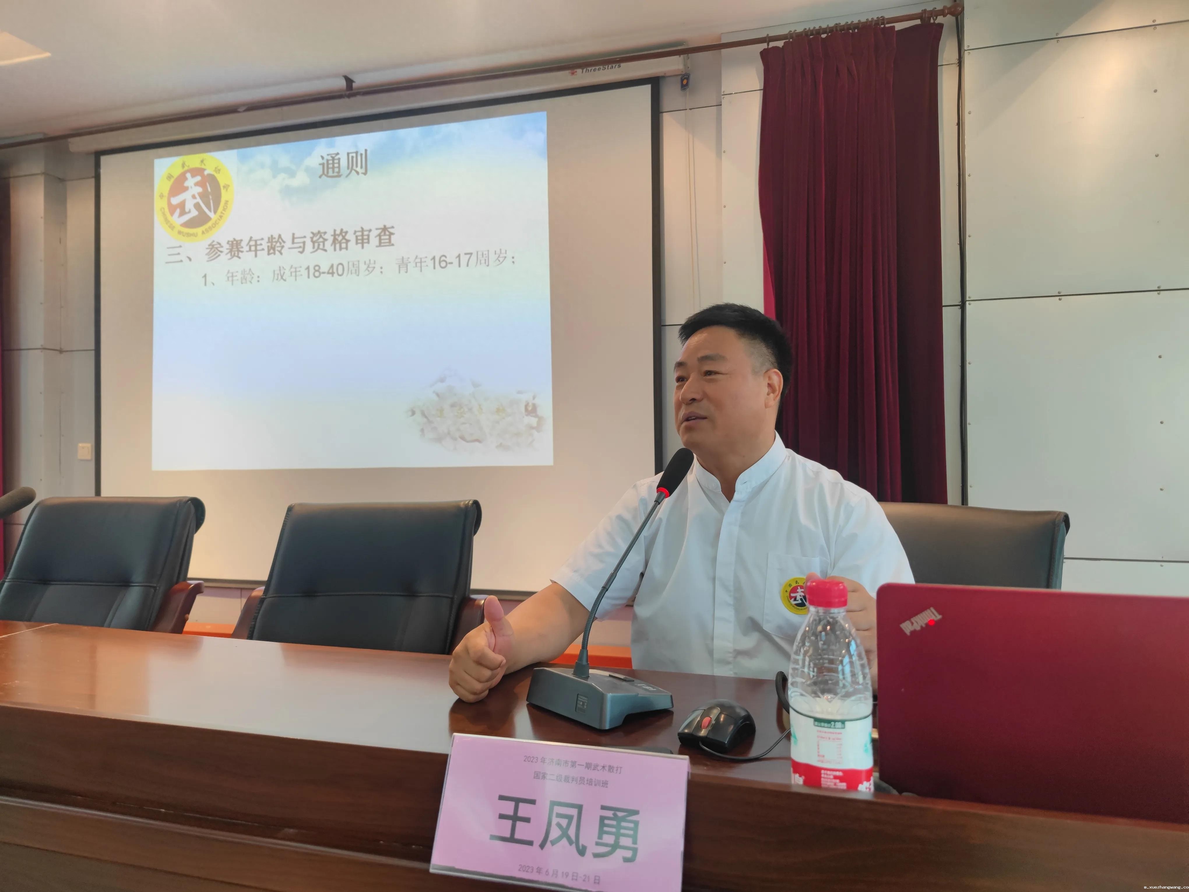 王凤勇会长在发言中,就国家武术散打项目进奥运会的进展,裁判员在武术散打运动中的重要作用,以及协会为促进济南市武术散打项目发展所做的工作等情况做了详细说明。