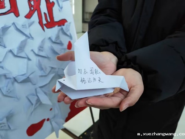和平鸽,作为和平、友谊、团结与纯洁的象征,提醒着青年学子勿忘战争带来的苦难,珍惜眼前的和平与美好生活。活动中,学生们领取和平鸽并亲笔书写上激励中华振兴的语句,每一笔每一划都展现着他们的豪情壮志,表达着对祖国的深情祝福与坚守承诺的信念:“愿以寸心寄华夏,且将岁月增山河;愿以吾辈之青春,捍卫盛世之中华。”这些和平鸽传递着对祖国河山永固、繁荣昌盛的美好愿景。