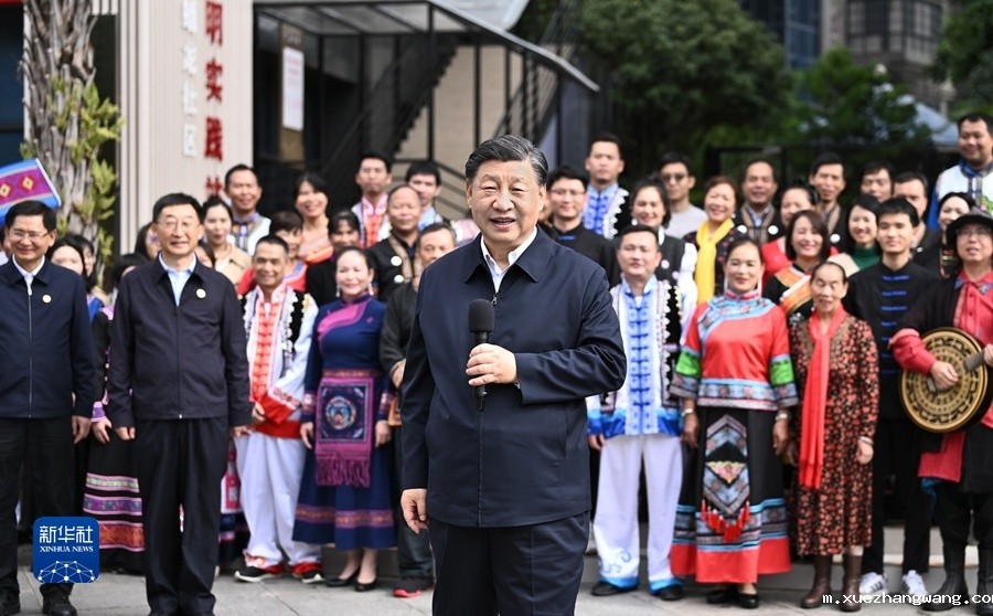 离开社区时,各族群众热情欢送总书记。习近平亲切地对大家说,我昨天结束对越南的国事访问,直接来广西考察调研。构建具有战略意义的中越命运共同体,将更有利于广西的开放发展,壮美广西前景光明。广西作为我国少数民族人口最多的自治区,各族人民同顶一片天、同耕一垌田、同饮一江水、同建一家园。全面建设社会主义现代化国家,一个民族都不能少。希望社区各族群众多来往,大家互帮互助,交知心朋友,做和睦邻居,共同建设幸福家园。
